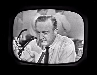 CBS News anchor Walter Cronkite struggles to keep his composure on-camera as he announces the news of the death of President